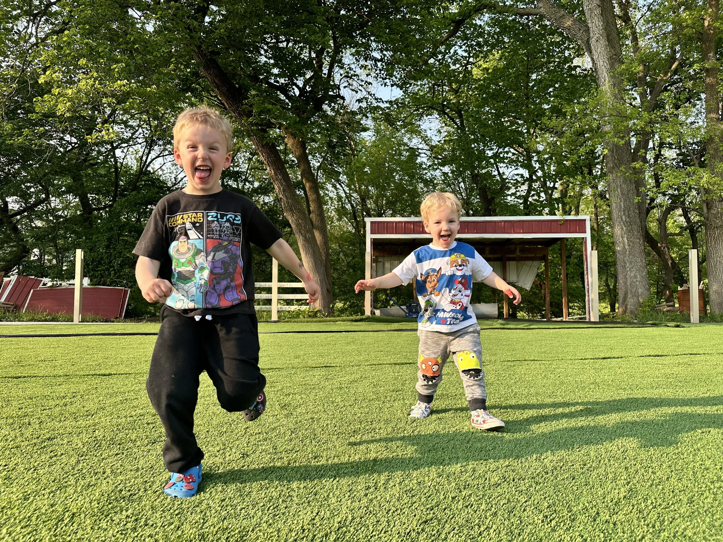 In 2022, the property next to the original Katie’s Kennel (now known as Tiny Town), became available. Katie and Josh needed more home for their family and more room for the dogs. The goal was never to expand but to spread out, create more space and better group dynamics for everyone. The existing machine shed was completely gutted and remodeled with the Big City dogs in mind. In July of 2024, Big City opened its doors. Today, Katie, Josh, and their boys live directly between both locations and remain involved in the day-to-day, always close by and invested in the care of every dog.