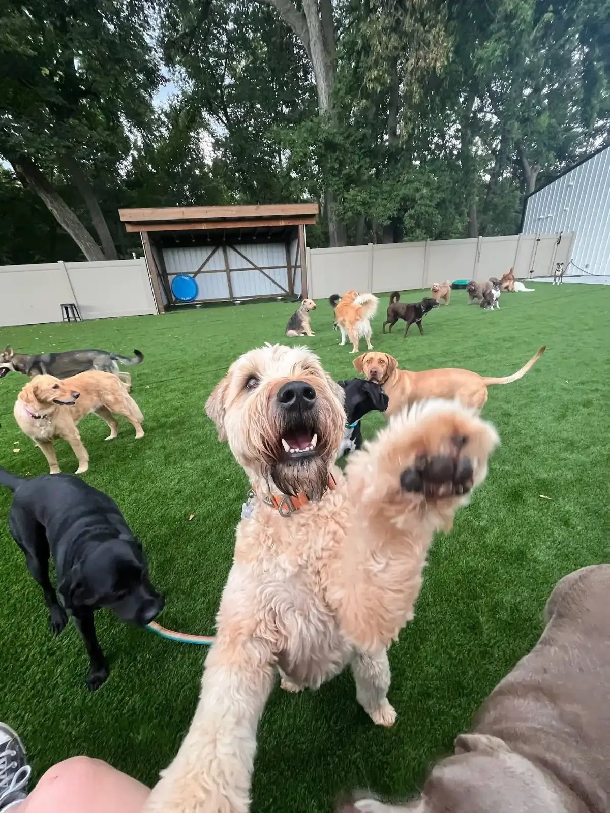 Today, Tiny Town is designed primarily for our smaller dogs and senior guests, while Big City is home to our medium and larger dogs. While weight is one factor in placement, age, temperament, and play style are also considered to ensure your dog is placed in the environment that suits them best.